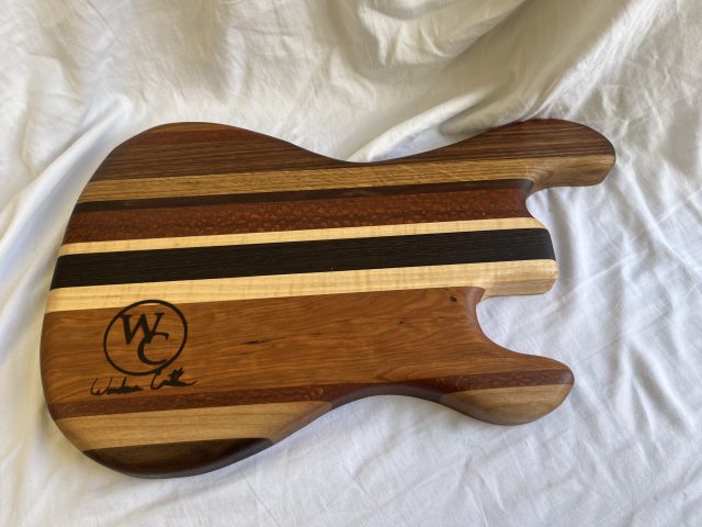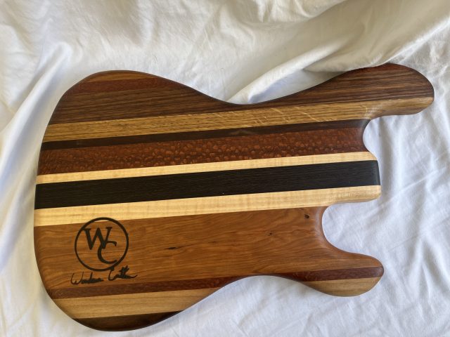 who doesn’t want to live their passion.  Make meal prep rock and let your guests know you’re the real deal with this iconic walnut, cherry, wenge, leopard wood, white oak, and curly maple stunner. rough dimensions 22″ x 14″ x 2″