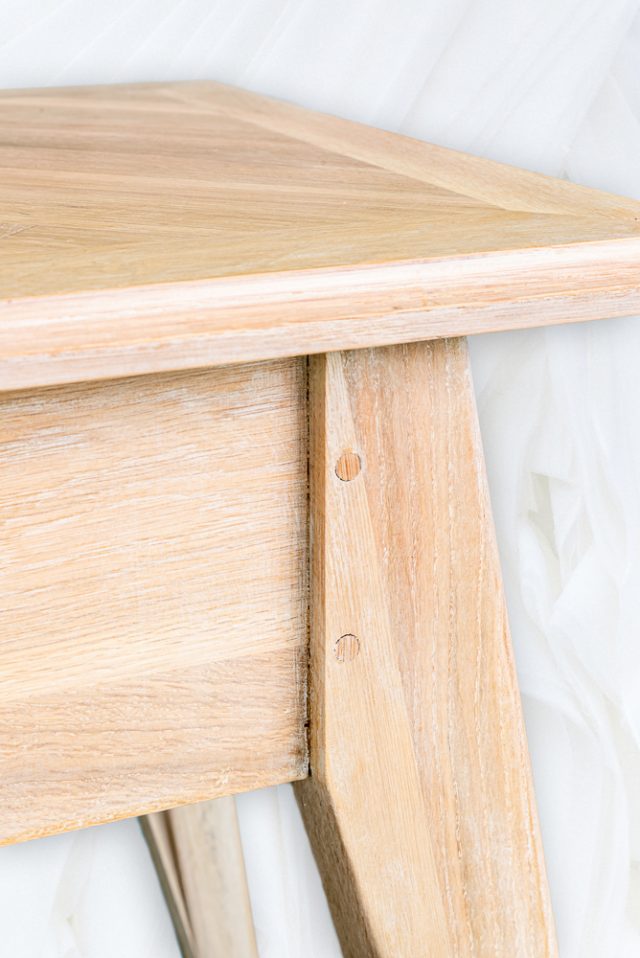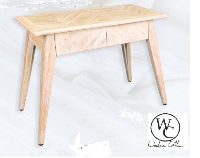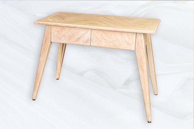 Little pickled oak writing desk I made recently. It was made with love and needs a home.Herringbone patterned top, chevron inlaid drawer front. Hand drawn spoke shaved legs. Frame all mortised and tenoned. You’ll go through 10 IKEA desks before this one just starts to go out of style, then your grandchild finds it in the attic and it’s cool again.