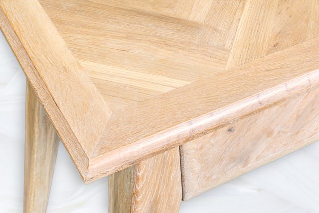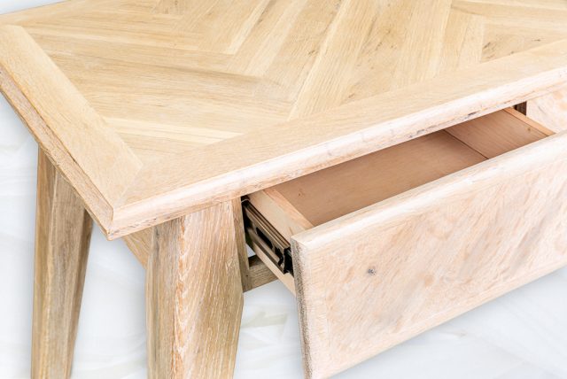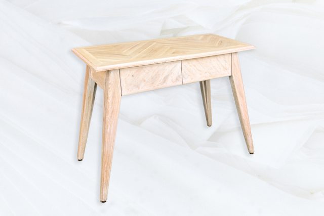 Herringbone patterned top, chevron inlaid drawer front. Hand drawn spoke shaved legs. Frame all mortised and tenoned. You’ll go through 10 IKEA desks before this one just starts to go out of style, then your grandchild finds it in the attic and it’s cool again.